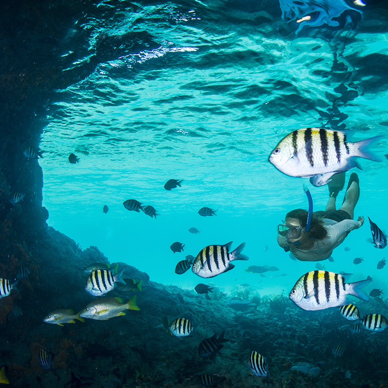 Grab your paddle to explore the intricate mangrove rivers winding through the incredible ecosystem of Shroud Cay. Complete the maze and discover some hidden gems. Don’t forget to make some bubbles at Wax Cut Drift Dive and Fire Coral Reef at the Northern end of the cay.