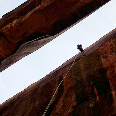 Photos Above; 1.1 Utah. One of our favorite places to dirtbag in luxury. Yes luxury. Our previous vessel was a 27′ toy hauler which found many free 5 star views across the vast U.S.A. 1.2 The Backpack. Crucial to carry all this Khaki Scout’s core survival gear. 1.3 Precious Larimar hailing from the D.R. and always close to Kate’s heart. 1.4 The do-rag. Essential for every pirate. 2.1 Cyrus prepping the rope for our 100′ rappel of Morning Glory Bridge. 2.2 The top of Morning Glory Bridge. Below hikers gawk at our 100′ free hang. 3.1 Our first traveling abode was a converted utility trailer. Cyrus made sure we had all the comforts of home. 3.2 Prepping to leave for our 100 mile traverse on the Bob Marshall Wilderness Open 2013.