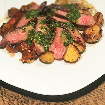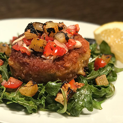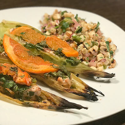 Served with grilled jalapeno corn salad and garlic mashed potatoes.