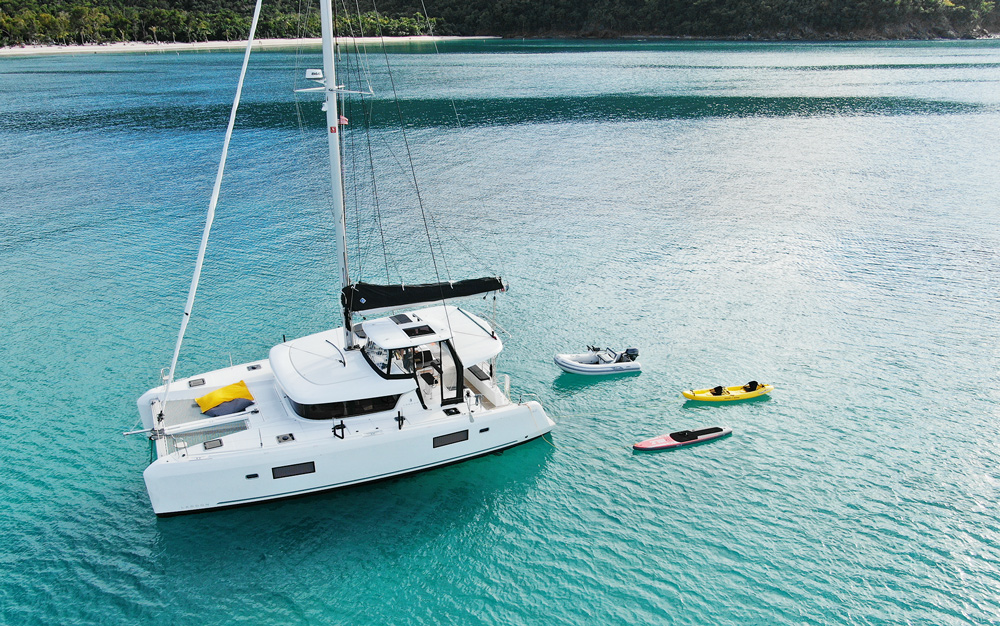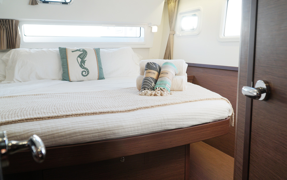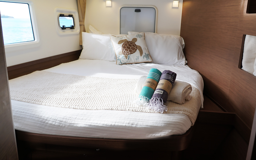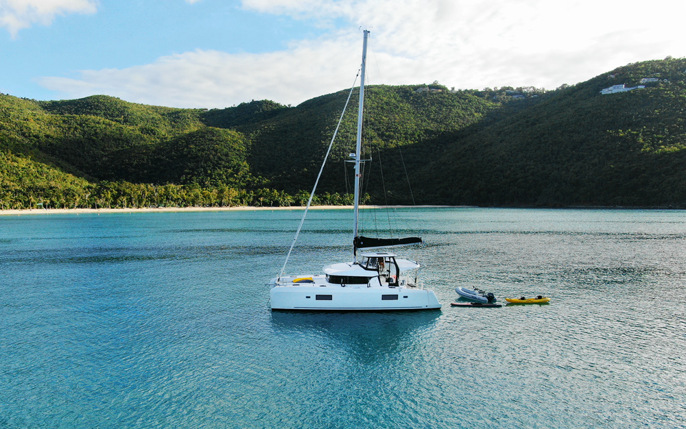Hear that? That’s the sound of you cruising in style while envious beach goers gawk at your sweet ride. Our 2019 Lagoon 42 has class, style and all the comforts of home with three private guest staterooms, a shiny Italian made Rocket R58 Espresso Machine, endless adventure gear tucked below deck and plenty of lounging space.